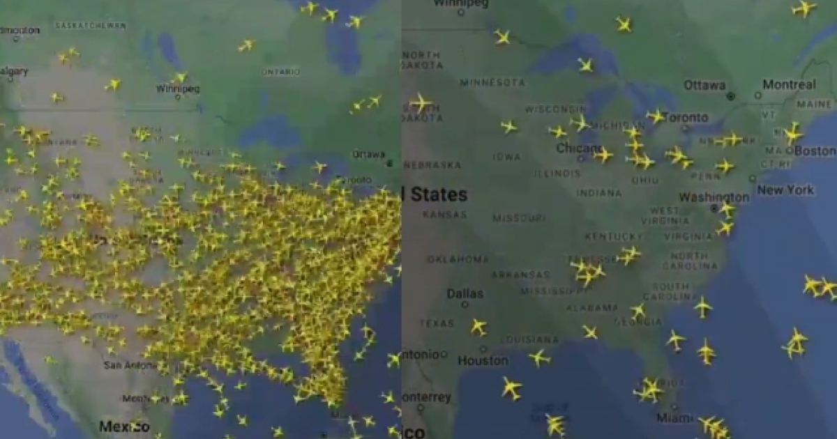 Τα πλάνα, που δημιουργήθηκαν από την FlightRadar, αναδεικνύουν το μέγεθος της αναστάτωσης που προκάλεσε η διακοπή λειτουργίας της CrowdStrike νωρίτερα σήμερα. Αρχικά, το βίντεο δείχνει έναν πολυσύχναστο ουρανό γεμάτο με αεροπλάνα που αντιπροσωπεύουν ενεργές πτήσεις. Καθώς προχωρά η μέρα, ο αριθμός των αεροπλάνων μειώνεται σημαντικά, καταδεικνύοντας τις σοβαρές επιπτώσεις της διακοπής.