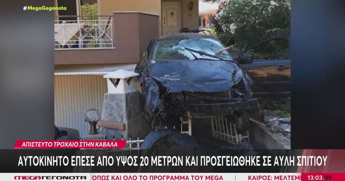 Ένα απίστευτο ατύχημα συνέβη τα ξημερώματα της Δευτέρας (29/7) στη Νέα Ηρακλείτσα στην Καβάλα, όταν ΙΧ όχημα έπεσε από ύψος 20 μέτρων και «προσγειώθηκε» σε αυλή σπιτιού.