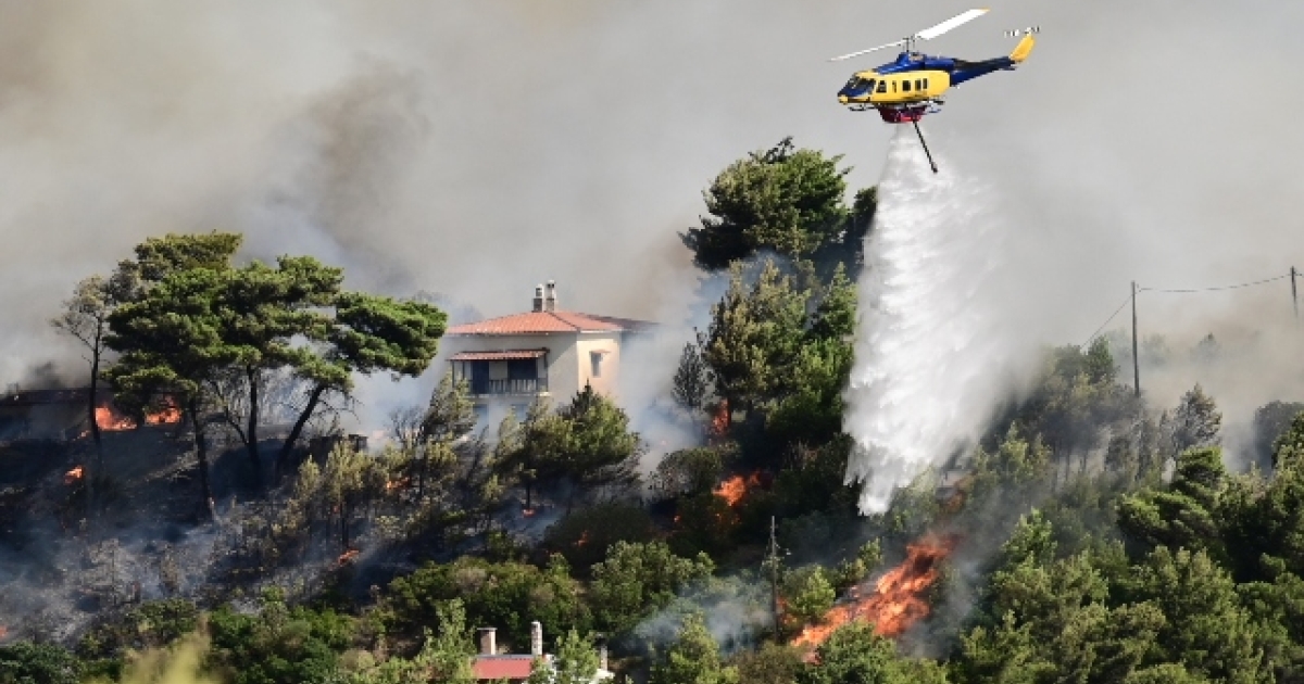Οι προσπάθειες από τις ρίψεις νερού των εναέριων μέσων έχουν στόχο τη μείωση της ταχύτητας εξάπλωσης της φωτιάς προς τους μικρότερους οικισμούς γύρω από το Πουρίθι, σύμφωνα με την ΕΡΤ.