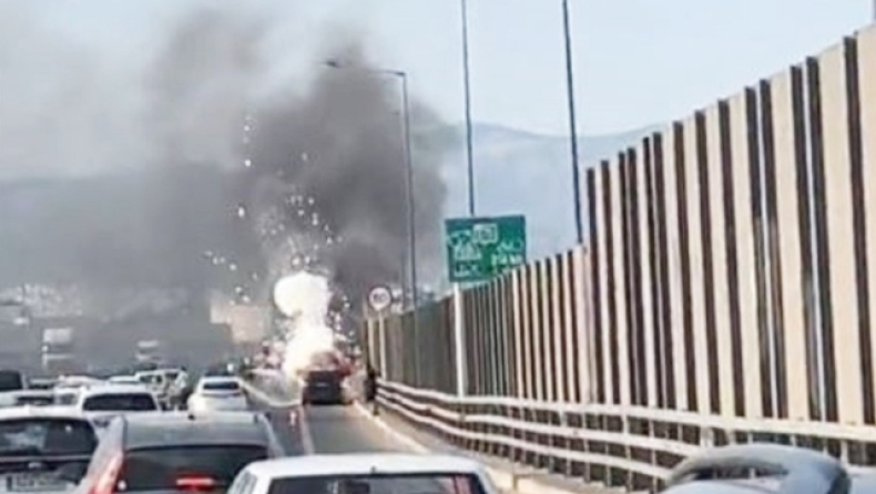 Έκρηξη σε αυτοκίνητο που τυλίχθηκε στις φλόγες στη λεωφόρο Κηφισού (vid)