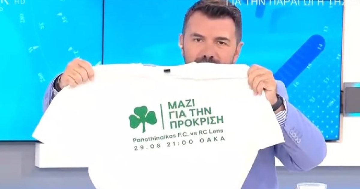 Συγκεκριμένα, στην εκπομπή του Open «Ώρα Ελλάδος» ο γνωστός για τα... «πράσινα» αισθήματα του Γιάννης Κολοκυθάς έφερε στο στούντιο ένα μπλουζάκι από εκείνα που μοίραζαν στο ΟΑΚΑ.