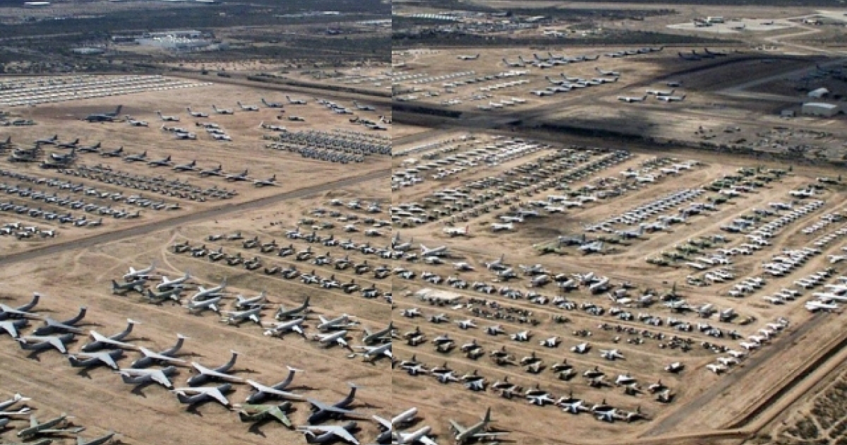 Η αεροπορική βάση Davis-Monthan στην Tucson της Αριζόνα στεγάζει τη μεγαλύτερη εγκατάσταση αποθήκευσης αεροσκαφών στον κόσμο, γνωστή ως «The Boneyard». Εκτεινόμενη σε 2.600 στρέμματα, αυτή η τεράστια τοποθεσία παρουσιάζει ένα σουρεαλιστικό και εντυπωσιακό τοπίο όπου σχεδόν 4.400 αεροσκάφη είναι τακτοποιημένα σε σειρά κάτω από τον ξηρό ήλιο της ερήμου.