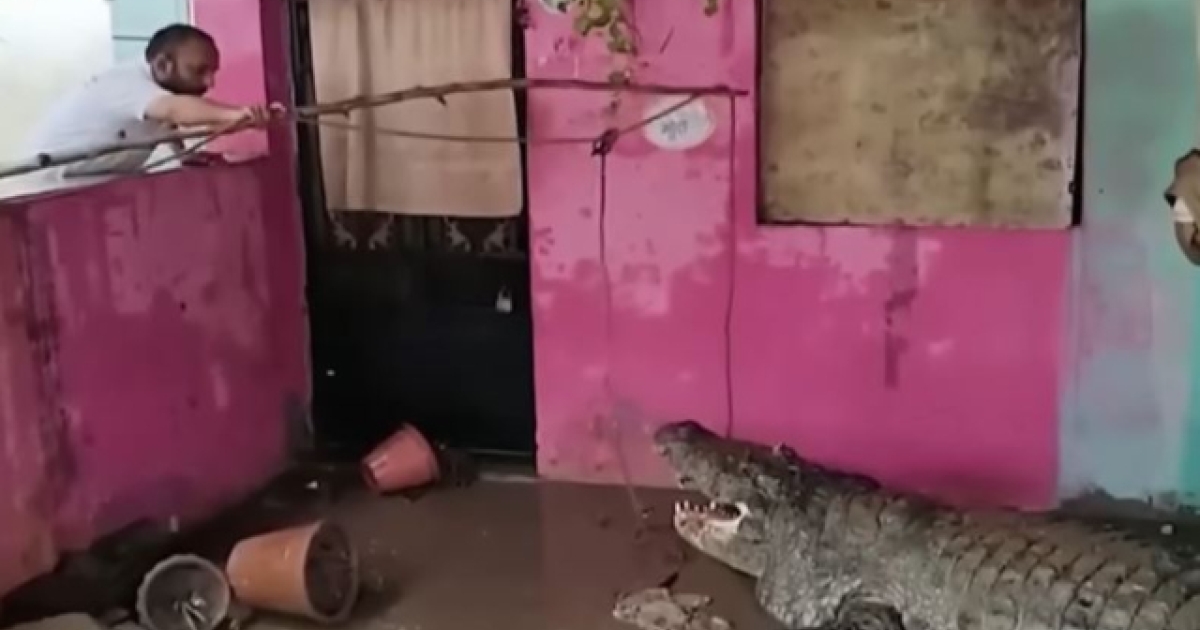Τρόμος στην Ινδία: Οι πλημμύρες έφεραν τεράστιους κροκόδειλους μέσα σε σπίτια (vid)