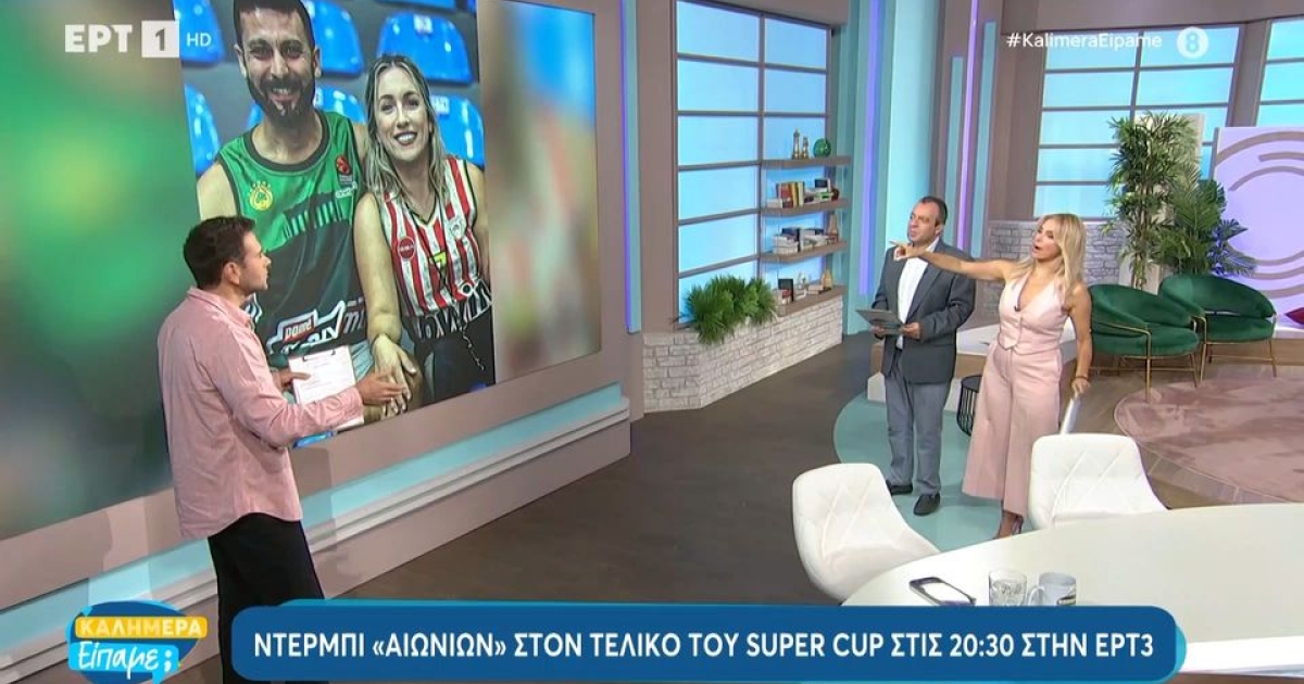Με αφορμή των ντέρμπι των «αιωνίων», η εκπομπή «Καλημέρα είπαμε;» της ΕΡΤ σχολίασε μια φωτογραφία, στην οποία ένας φίλος του Παναθηναϊκού και μία φίλη του Ολυμπιακού ποζάρουν μαζί, μεταφέροντας το μήνυμα για φιλαθλητικό πνεύμα.