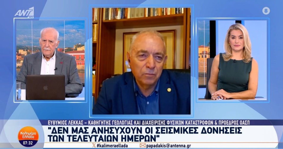Στον ΑΝΤ1 και στην εκπομπή «Καλημέρα Ελλάδα« μίλησε το πρωί της Τρίτης (8/10) ο Πρόεδρος του ΟΑΣΠ, Ευθύμης Λέκκας, σχετικά με τους σεισμούς της Δευτέρας τόσο στην Κρήτη, όσο και στην δόνηση με επίκεντρο την Θήβα, που έγινε αισθητή και σε πολλές περιοχές της Αττικής.