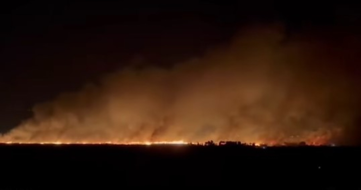 Η φωτιά αυτή τη στιγμή καίει καλάμια που βρίσκονται στο ύψος της λίμνης.