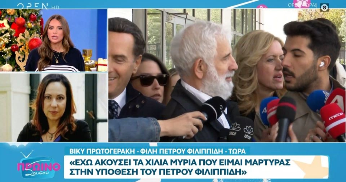 Στον αέρα της εκπομπής «Πρωινό ΣουΣου» στο OPEN βγήκε η Βίκυ Πρωτογεράκη, η οποία μίλησε για τον Πέτρο Φιλιππίδη, στη δίκη του οποίου είναι μάρτυρας υπεράσπισης. Κάτι που όπως είπε, το έχει πληρώσει πολύ ακριβά.
