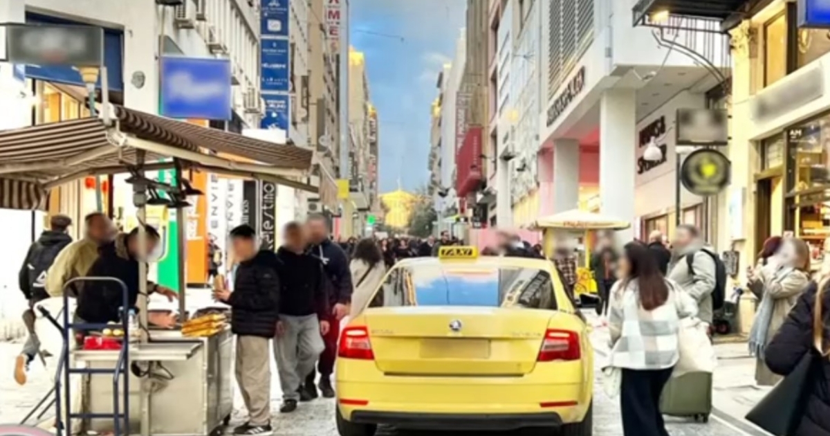 Όπως μεταδίδει ο ΣΚΑΙ, πλάνα καταγράφουν τον οδηγό να έχει μπει με το ταξί του στην εμπορική φλέβα του πεζοδρόμου, χωρίς να είναι ξεκάθαρο τι τον έκανε να νομίζει ότι είχε το δικαίωμα.