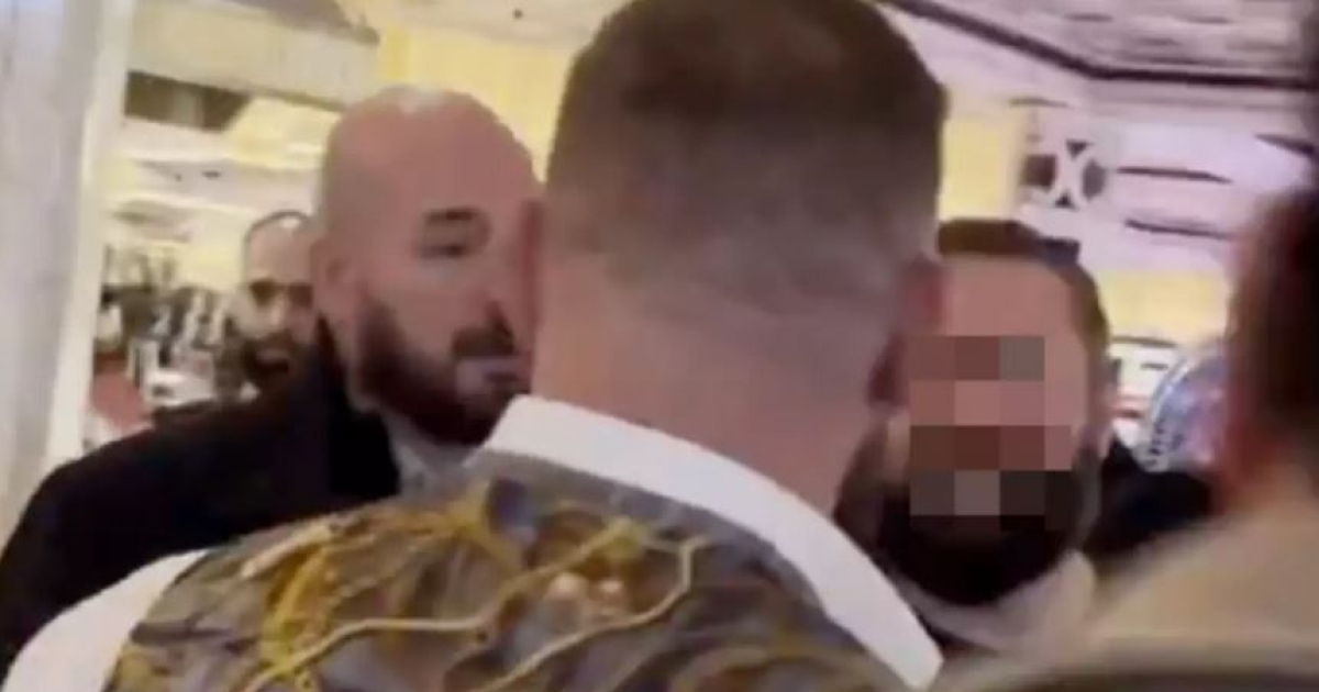 Δεν είναι ξεκάθαρο τι ακριβώς συνέβη μεταξύ των δύο ανδρών, ωστόσο, ο αθλητής του UFC ακούγεται να λέει: «Σε φτύνω στα μούτρα, τι κάνεις; Τίποτα. Σου φτύνω το πρόσωπό ανόητε», πριν απομακρυνθεί με τη συνοδεία του.