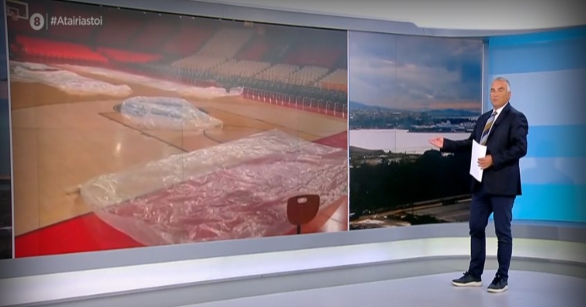 Προβλήματα δημιουργήθηκαν και στο ΣΕΦ, με το γήπεδο του Ολυμπιακού να γεμίζει νερά και να χρησιμοποιούντα κουβάδες και νάιλον για να προστατευτεί το παρκέ.