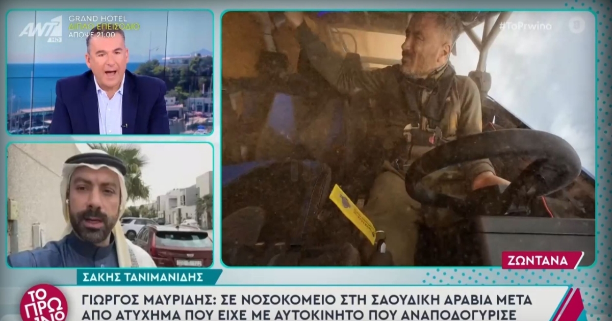 Ο Σάκης Τανιμανίδης εμφανίστηκε σήμερα ζωντανά στην εκπομπή «Πρωινό» και ανέφερε ότι ο συνεργάτης του τραυματίστηκε ενώ οδηγούσε στην έρημο, αλλά ευτυχώς όλα πήγαν καλά και πήρε εξιτήριο.