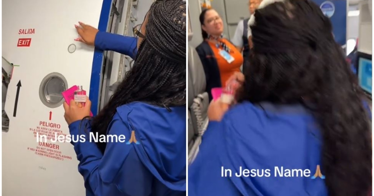 Στο βίντεο, η δημιουργός περιεχομένου βυθίζει τα δάχτυλά της σε ένα μπουκάλι αγιασμού και σχηματίζει το σταυρό στην πόρτα του αεροσκάφους, ενώ στο φόντο ακούγεται γκόσπελ μουσική, προσθέτοντας μια ιερή ατμόσφαιρα στην τελετουργία της.