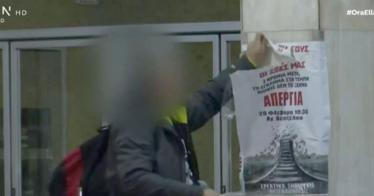 Προκλητική συμπεριφορά: Κατέβαζε τις αφίσες για τις συγκεντρώσεις των Τεμπών (vid)