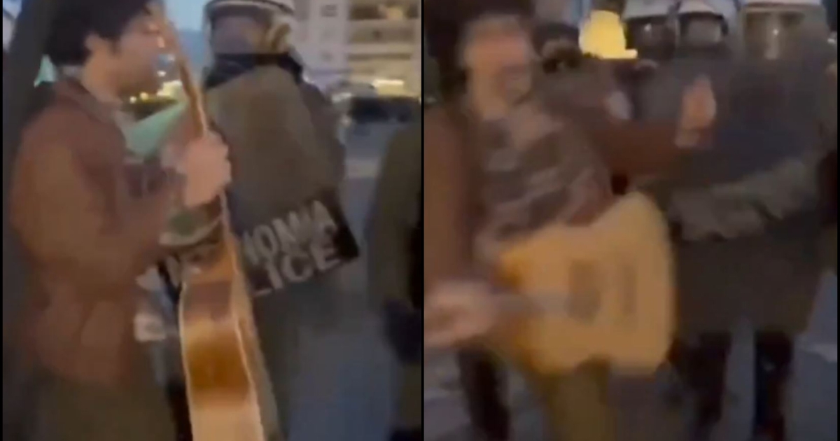 Αίσθηση προκάλεσε η εικόνα ενός νεαρού μουσικού που έπαιζε κιθάρα κατά την διάρκεια των επεισοδίων στο Σύνταγμα για την επέτειο των δύο χρόνων από την τραγωδία στα Τέμπη.