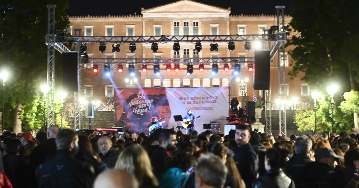 Ξεκίνησε η συναυλία για τα Τέμπη στο Σύνταγμα με πλήθος κόσμου να δίνει δυναμικά το παρών.