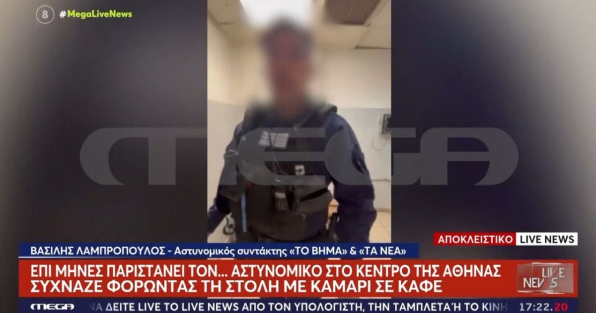 Βίντεο ντοκουμέντο που παρουσίασε το Live News δείχνει έναν άντρα ντυμένο με αστυνομική στολή, ο οποίος έχει όλο τον απαραίτητο εξοπλισμό και κρατάει ένα ποτήρι καφέ.