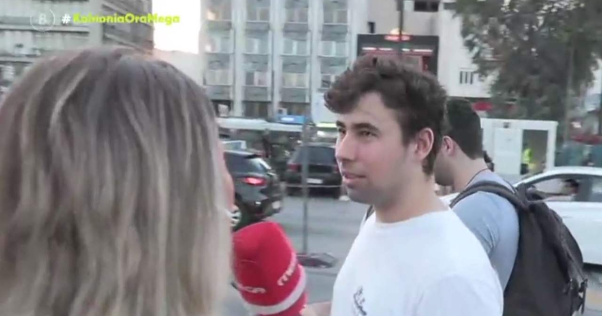Η δημοσιογράφος πλησιάζει τον οπαδό του τριφυλλιού και τον ρωτάει αρχικά που πηγαίνει με εκείνον να απαντάει πως θα επισκεφτεί το νησί της Πάρου για 4 ημέρες. Εν συνεχεία κάνει αναφορά στην ηλικία του ρωτώντας τον: «Να φανταστώ εσείς δεν είστε 18 χρονών;» με εκείνον να της λέει: «Όχι, δεν είμαι 18 αλλά δεν με πήραν και τα χρόνια, είμαι 22».