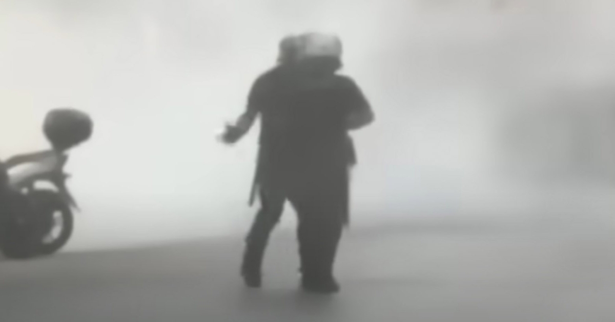 Το στιγμιότυπο κατεγράφη σε βίντεο που δημοσίευσε το thebest.gr, ενώ παράλληλα γινόταν χρήση δακρυγόνων προς τους διαδηλωτές.