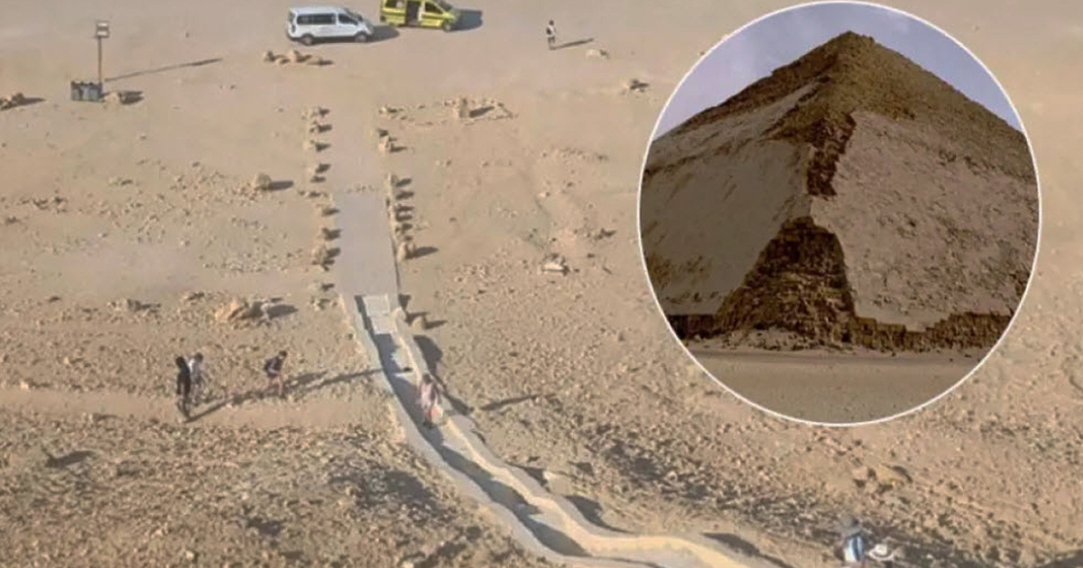Η Bent Pyramid, χτισμένη γύρω στο 2.600 π.Χ. από τον Φαραώ Σνεφρού, ξεχωρίζει για τη χαρακτηριστική της κλίση - η γωνία αλλάζει περίπου στα μισά του ύψους της, καθώς η αρχική σχεδίαση αποδείχθηκε υπερβολικά απότομη και επικίνδυνη για τη σταθερότητα της κατασκευής. Το εσωτερικό της, με τα χαμηλά ταβάνια και τις απότομες ράμπες, θεωρείται μία από τις πιο δύσκολες πυραμίδες για εξερεύνηση.