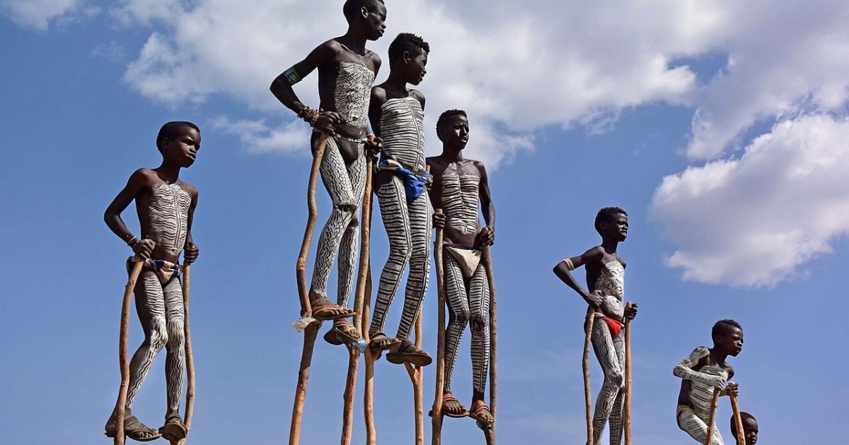 Ethiopia's Banna Tribe use long sticks to avoid snakes in their valley