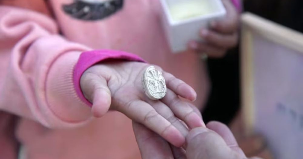 Το εντυπωσιακό, όμως, δεν είναι μόνο η αξία του αντικειμένου. Είναι ο τρόπος που βρέθηκε. Όχι από αρχαιολόγους, ούτε στο πλαίσιο κάποια οργανωμένης ανασκαφής, αλλά από ένα κορίτσι τριών ετών, τη μικρή Ζιβ, που επισκεπτόταν με την οικογένειά της τον αρχαιολογικό λόφο του Tel Azekah στα τέλη του 2025.
