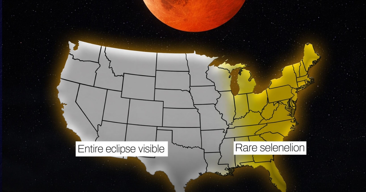 Ένα από τα πιο θεαματικά αστρονομικά φαινόμενα της χρονιάς θα έχουν την ευκαιρία να παρακολουθήσουν οι κάτοικοι των ΗΠΑ στις 3 Μαρτίου. Η ολική σεληνιακή έκλειψη που θα εκτυλιχθεί στον νυχτερινό ουρανό αναμένεται να διαρκέσει περίπου 58 λεπτά, προσφέροντας ένα σπάνιο και συνάμα εντυπωσιακό θέαμα.