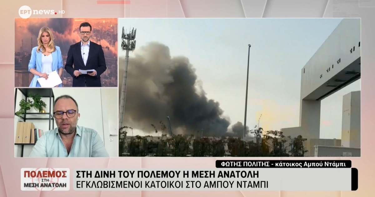 Ένας Έλληνας κάτοικος που τα τελευταία τρία χρόνια ζει στο Άμπου Ντάμπι μίλησε στην ΕΡΤ για την κατάσταση που επικρατεί στη Μέση Ανατολή εδώ και μία εβδομάδα όπου ξεκίνησαν οι βομβαρδισμοί ανάμεσα σε Ισραήλ-ΗΠΑ και Ιράν.