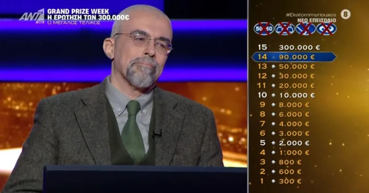 Το δίλημμα ήταν ξεκάθαρο. Αν απαντούσε σωστά, θα κέρδιζε 300.000 ευρώ. Αν όμως έκανε λάθος, θα έπεφτε πολύ χαμηλότερα από τις 90.000 που είχε ήδη εξασφαλίσει και συγκεκριμένα στις 10.000 ευρώ, που ήταν το προηγούμενο «μαξιλαράκι.»