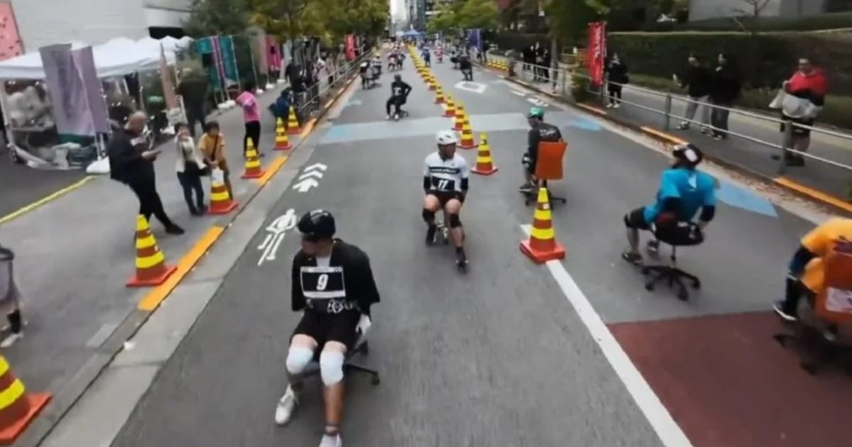 Από το 2010, η Ιαπωνία διαθέτει τη δική της Ομοσπονδία Αγώνων με Καρέκλες Γραφείου, διοργανώνοντας ένα ολόκληρο πρωτάθλημα που απαιτεί στρατηγική, αντοχή και... κράνος.