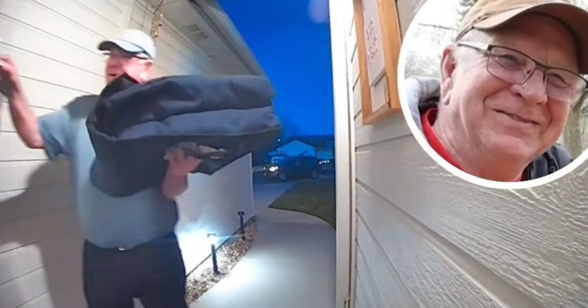Η κίνηση καταγράφηκε από κάμερα στην είσοδο του σπιτιού και μέσα σε λίγες ώρες το βίντεο άρχισε να κάνει τον γύρο του διαδικτύου.