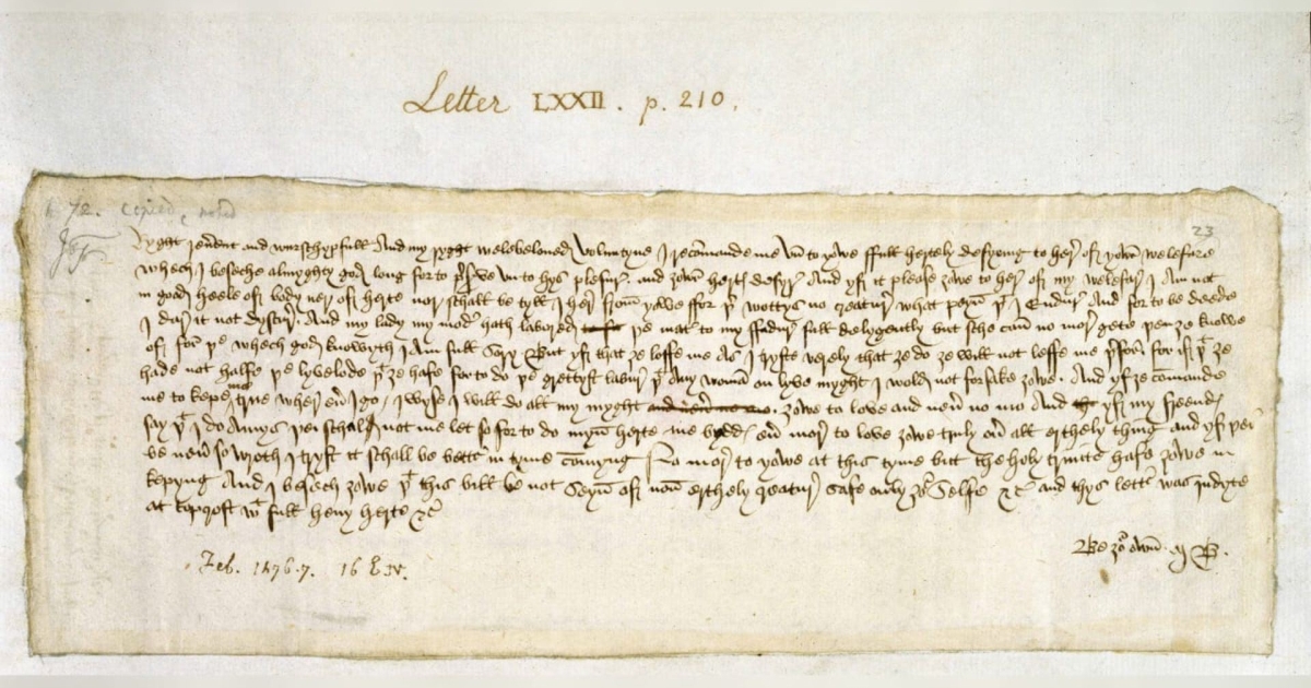 Υπάρχουν γράμματα που μυρίζουν κερί, υγρασία και μελάνι. Και υπάρχουν γράμματα που, όσο κι αν έχουν περάσει αιώνες, σε αγγίζουν σαν να γράφτηκαν χθες. Ένα τέτοιο είναι η επιστολή της Margery Brews προς τον αρραβωνιαστικό της, John Paston III, τον Φεβρουάριο του 1477.