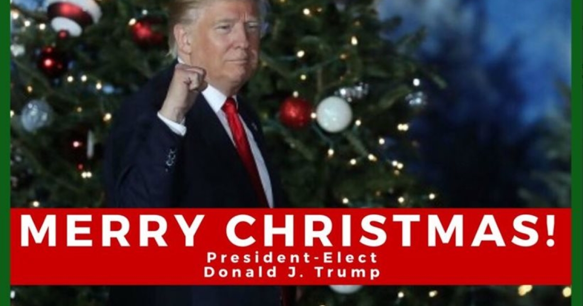 Με σφιγμένη τη γροθιά το «merry christmas» του Τραμπ -Σε μια φωτογραφία με φόντο ένα χριστουγεννιάτικο δέντρο