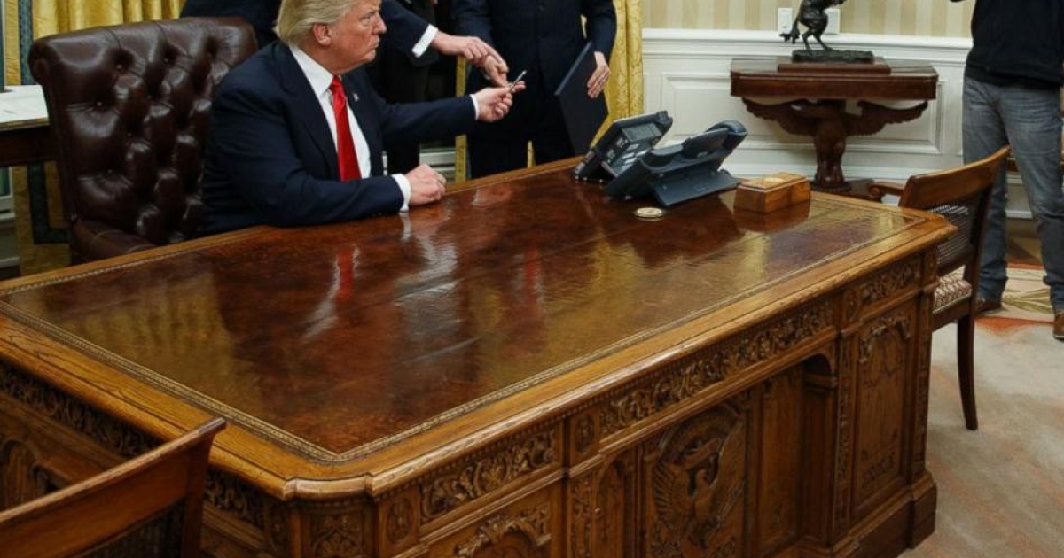 Ο Ντόναλντ Τραμπ φρόντισε να αλλάξει όσο το δυνατόν πιο γρήγορα τις βυσσινί κουρτίνες που είχε στο γραφείο ο Μπαράκ Ομπάμα με χρυσές για να φωτίσουν περισσότερο τον χώρο.