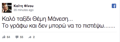 Οι φίλοι και οι συγγενείς του είναι σοκαρισμένοι με τα νέα, τα οποία έφτασαν και πριν λίγα λεπτά στο «Σπίτι του ηθοποιού». Τα δυσάρεστα επιβεβαίωσε και η Καίτη Φίνου, η οποία σημείωσε σε ανάρτησή της στα social media: «Καλό ταξίδι Θέμη Μάνεση… Το γράφω και δεν μπορώ να το πιστέψω……»