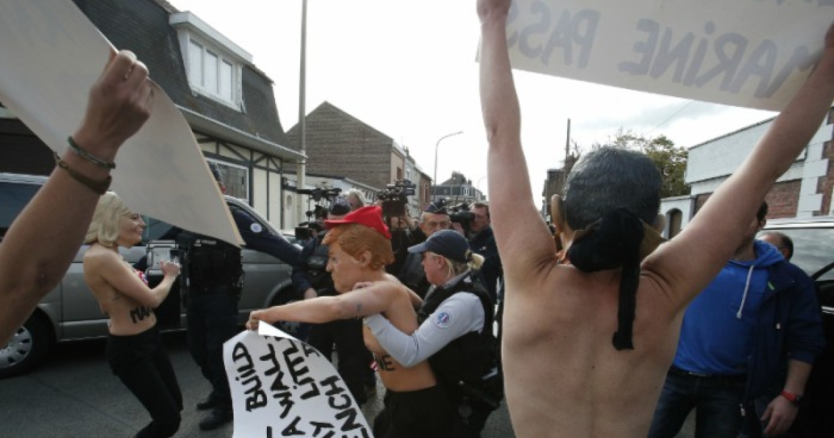 Aαναστάτωση προκάλεσαν γυμνόστηθες ακτιβίστριες των Femen με τη διαμαρτυρία τους, έξω από το εκλογικό κέντρο στο οποίο επρόκειτο να ψηφίσει η Μαρίν Λεπέν.