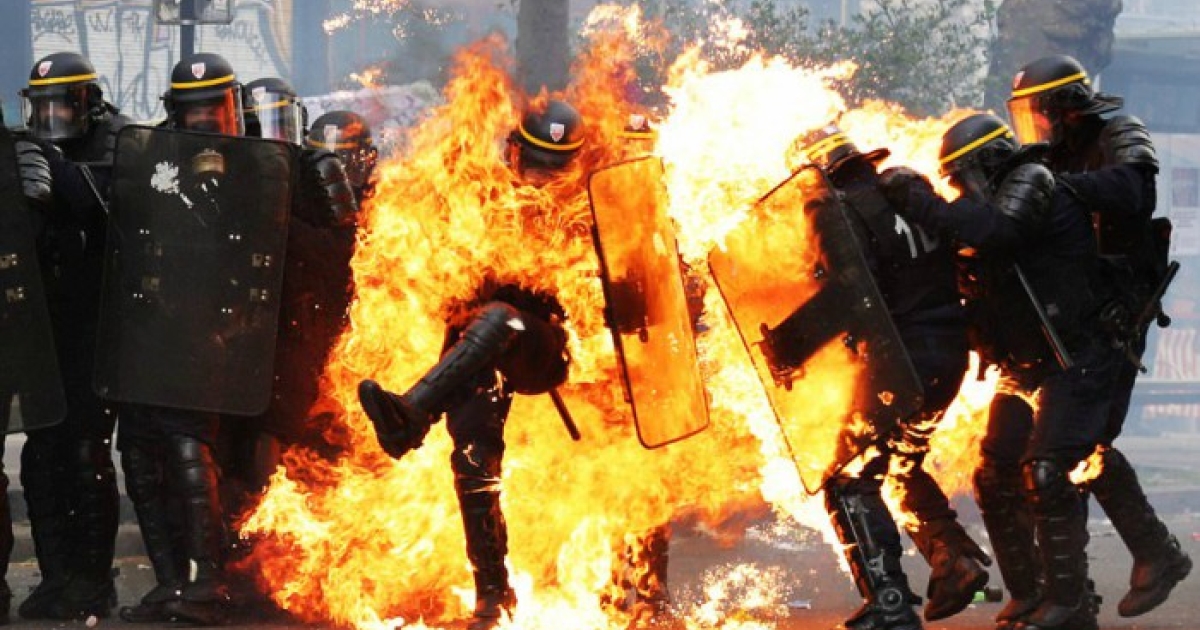 Συγκρούσεις στο Παρίσι, πήραν φωτιά αστυνομικοί (pics)