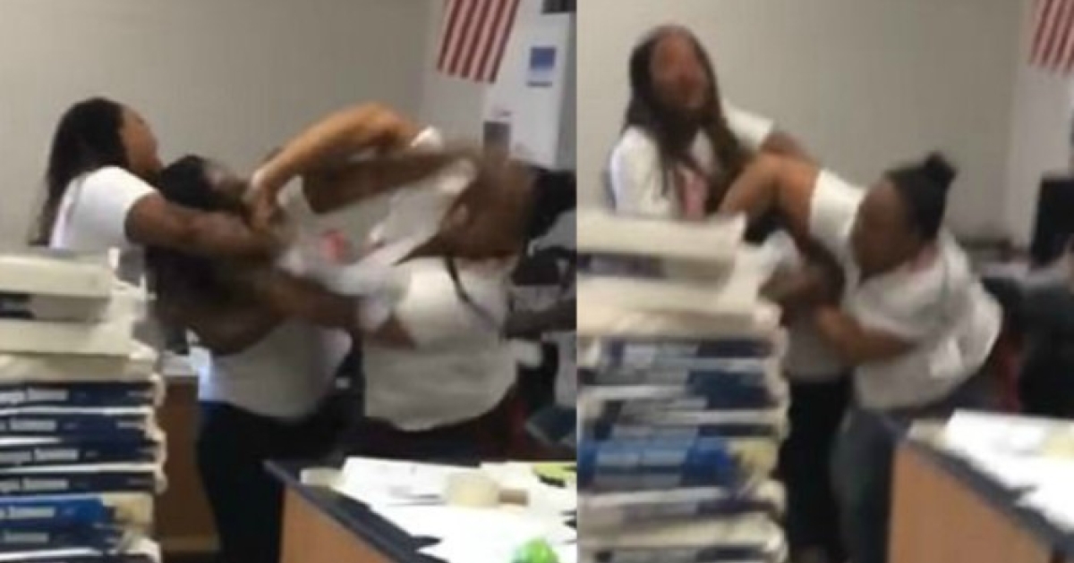 Όλα αυτά άρχισαν όταν η μία γυναίκα έσπρωξε ένα γραφείο προς το μέρος της άλλης.