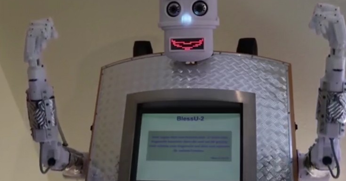 Πώς; Με ένα ρομπότ-ιερέα που δίνει την ευλογία του κι ευχές στους πιστούς σε πέντε γλώσσες ενώ φως βγαίνει από τα υψωμένα χέρια του. Το ρομπότ με την ευρηματική αν μη τι άλλο ονομασία BlessU-2 παρουσιάστηκε στο πλαίσιο έκθεσης για την επέτειο της έναρξης της Μεταρρύθμισης με τη θυροκόλληση των 95 θέσεών του στην εξώπορτα του Μητροπολιτικού Ναού της Βιτεμβέργης.