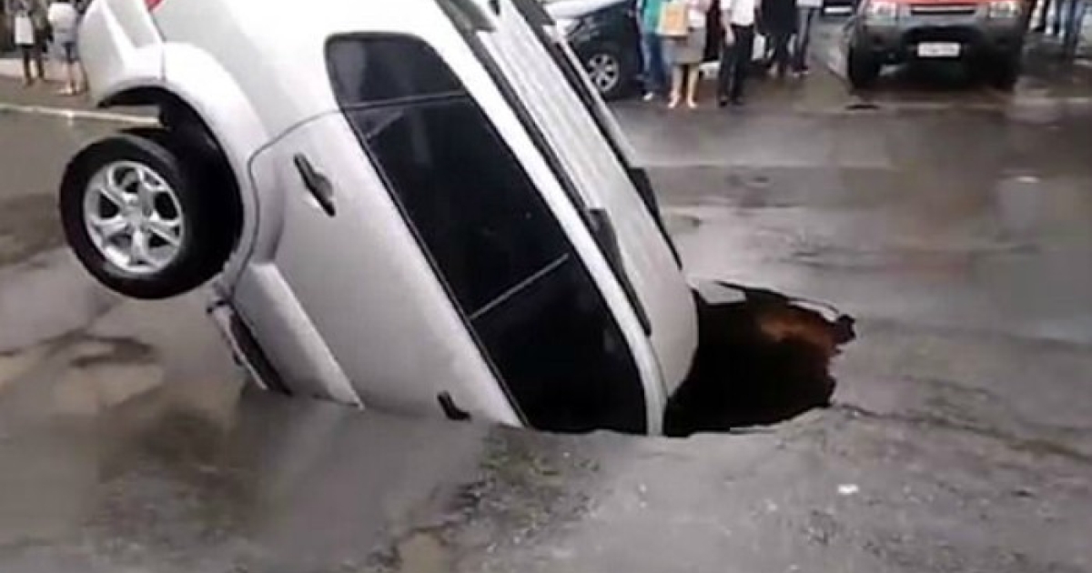 Το βίντεο κυκλοφορεί τις τελευταίες ώρες στο διαδίκτυο και δείχνει ένα μεγάλο τζιπ να βυθίζεται σε μία λακούβα σε δευτερόλεπτα.