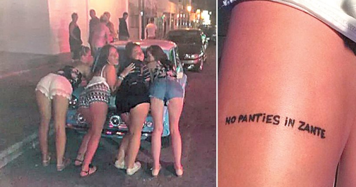 «Ξεβράκωτοι στη Ζάκυνθο» γράφει το τατουάζ στο μηρό της νεαρής τουρίστριας