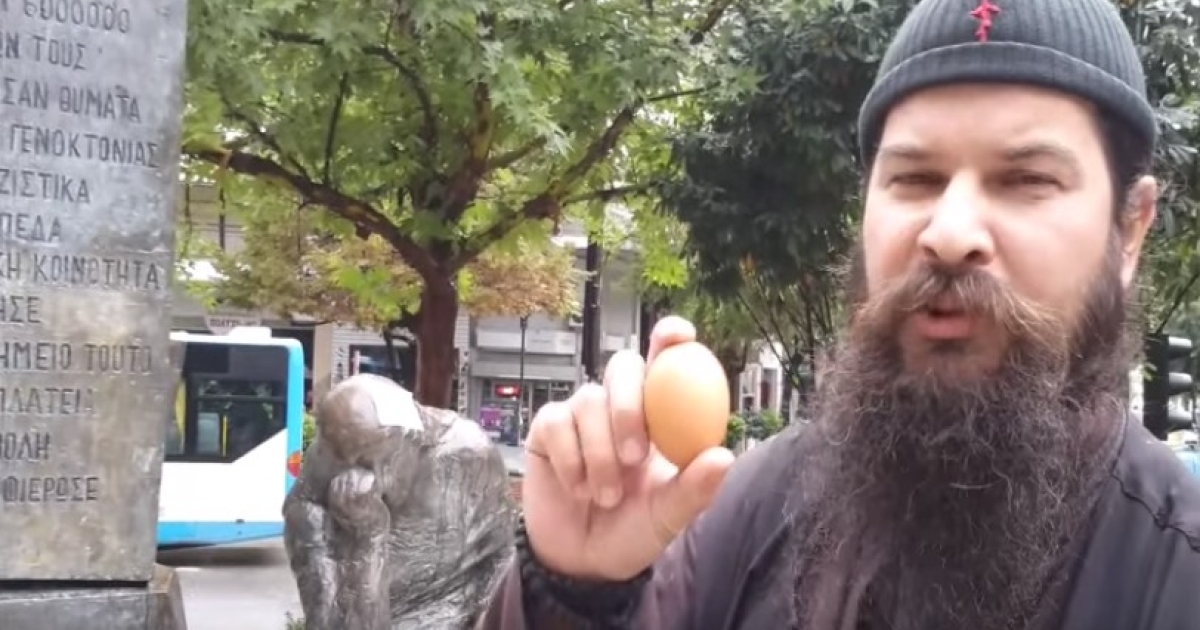 Ο «Πατήρ Κλεομένης» επιτίθεται με αυγά και φτυσιές σε μνημείο του Ολοκαυτώματος στη Λάρισα (vid)