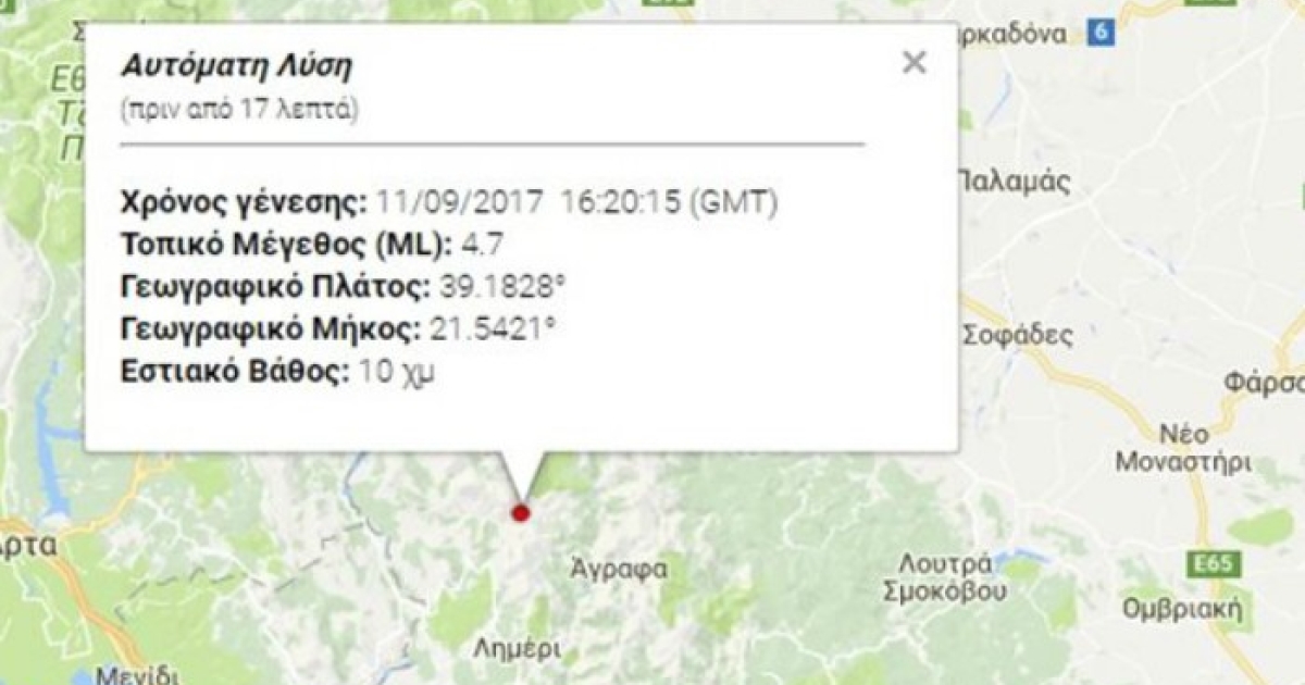 Σεισμός 4,7 ρίχτερ κοντά στην Καρδίτσα