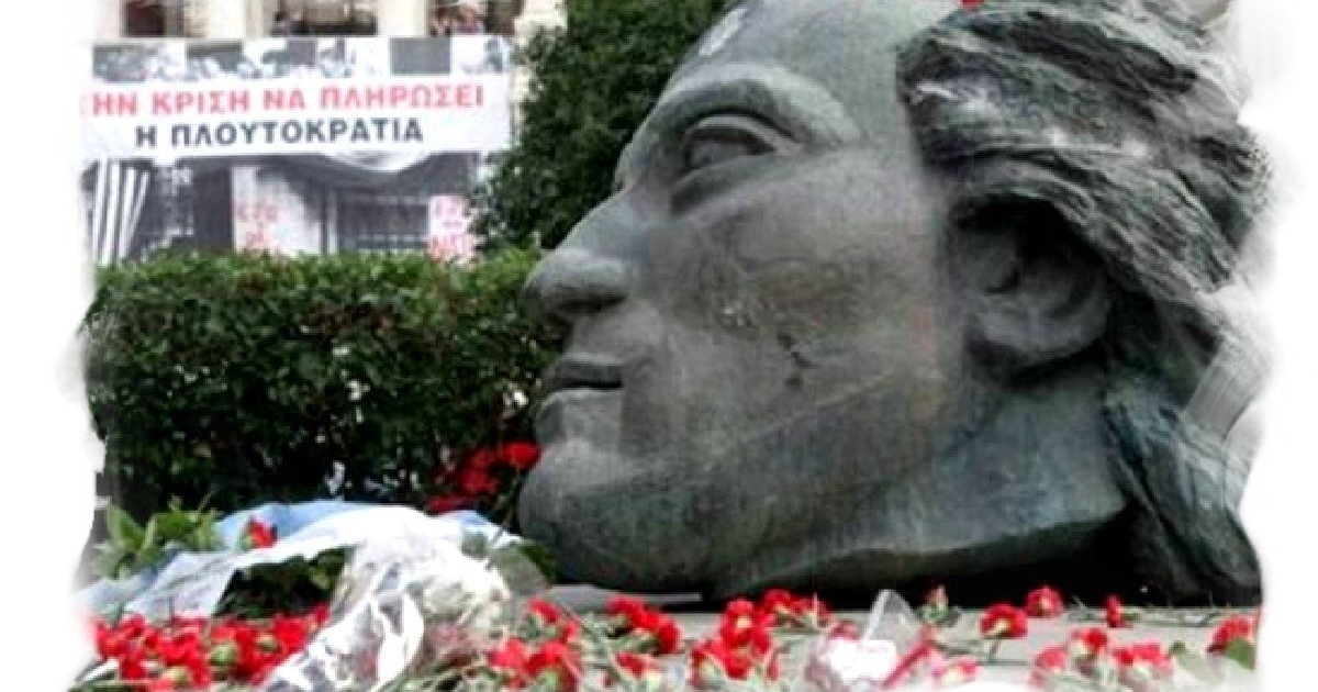 «Βλέπουμε κάθε χρόνο τέτοιες ημέρες, μικρούς και μεγάλους, ''δεξιούς'' (ψοφοδεξιούς) κι αριστερούς, πολίτες και πολιτικούς (πολιτικάντηδες), να καταθέτουν στεφάνια και να αφήνουν λουλούδια (κόκκινα γαρύφαλλα, κατά προτίμηση...) σε μια τεράστια ασώματη κεφάλα που ''κοσμεί'' τον προαύλιο χώρο του Πολυτεχνείου. Τι είναι αυτή η κεφάλα; Και τι συμβολίζει;