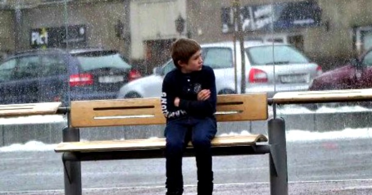 Χιόνι παντού και ένα αγόρι κάθεται στο παγκάκι μιας στάσης, κάπου στη Νορβηγία...