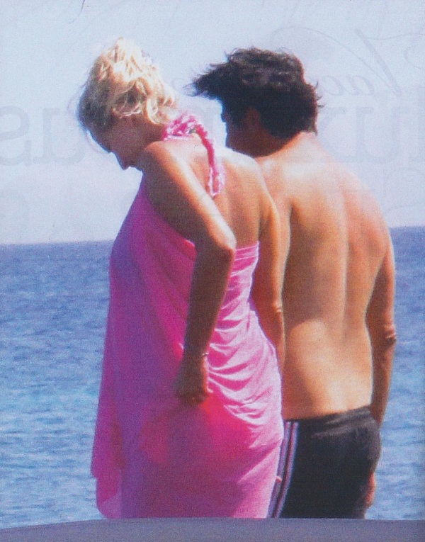 Την συνόδευε ο μέλλων σύζυγός της και μάλιστα, οι δυο τους προσπαθούσαν να είναι όσο περισσότερο διακριτικοί μπορούσαν, σύμφωνα με το ''Hello''. Επιπλέον, τα βράδια, αφού όλη την ημέρα είχαν απολαύσει τα μπανάκια τους -κυρίως στην παραλία του Περιβόλου- έκαναν βόλτες στα γραφικά στενά του νησιού κι ύστερα έπιναν το ποτό τους με θέα το ηφαίστειο.