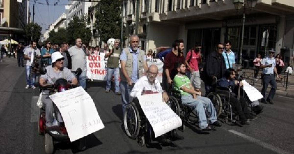 Περίπου 200 άτομα βρέθηκαν στο σημείο να διαδηλώνουν για τα δικαιώματά τους, ανήμερα της ημέρας για τα άτομα με αναπηρία.