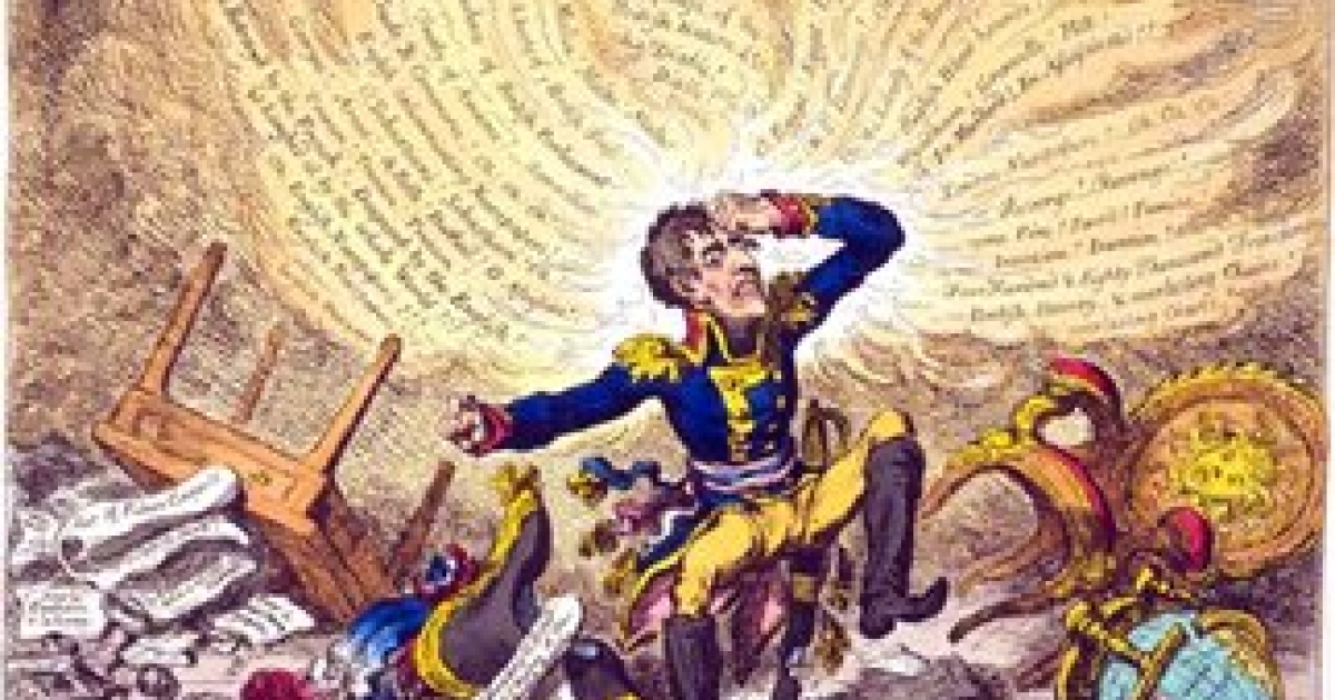O Άγγλος σκιτσογράφος Τζέιμς Γκίλρεϊ «έκανε περισσότερα για την ήττα μου από όλους τους στρατούς της Ευρώπης μαζί», φέρεται να είπε κάποτε ο Ναπολέων Βοναπάρτης. Το παραπάνω σκίτσο είναι του 1803.