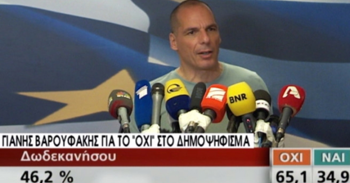 «Ο ελληνικό λαός επέστρεψε το τελεσίγραφο» τόνισε σε δήλωσή του από το υπουργείο Οικονομικών ο Γιάννης Βαρουφάκης, σημειώνοντας πως «με το "όχι", αγνοώντας τον φόβο που δημιούργησαν με τις κλειστές τράπεζες και με τα ΜΜΕ της ολιγαρχίας, θα τείνουμε χείρα συνεργασίας προς τους εταίρους μας. Θα τους καλέσουμε έναν έναν».