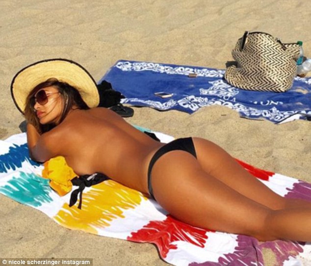 Η Νικόλ Σέρζινγκερ φωτιά topless στην παραλία (pics)