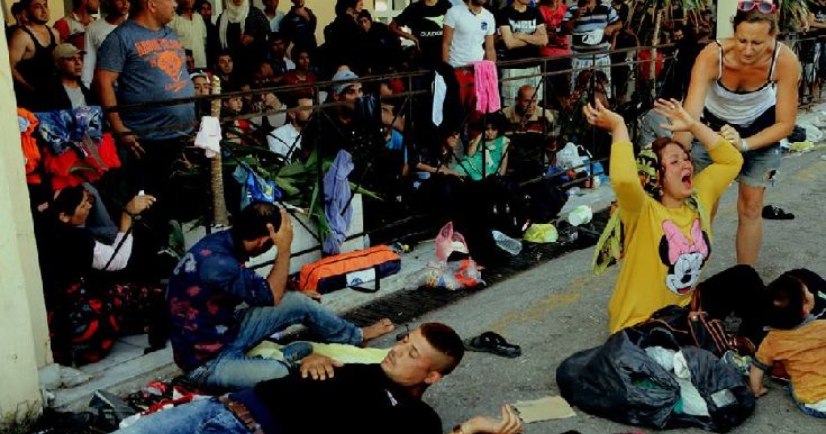 Υπολογίζεται ότι περισσότεροι από 10.000 Σύροι πρόσφυγες παραμένουν στο νησί χωρίς ακόμα να έχουν καταφέρει να καταγραφούν τα στοιχεία τους για να τους δοθεί η άδεια να μπουν στο Ελευθέριος Βενιζέλος και τα άλλα πλοία που τους μεταφέρουν στον Πειραιά, για να συνεχίσουν το ταξίδι τους.